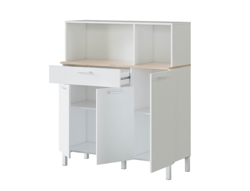 Küchenschrank 108x40x126 cm mattweiß und kanadische Eiche mit 3 Türen und 1 Schublade – Fanaro