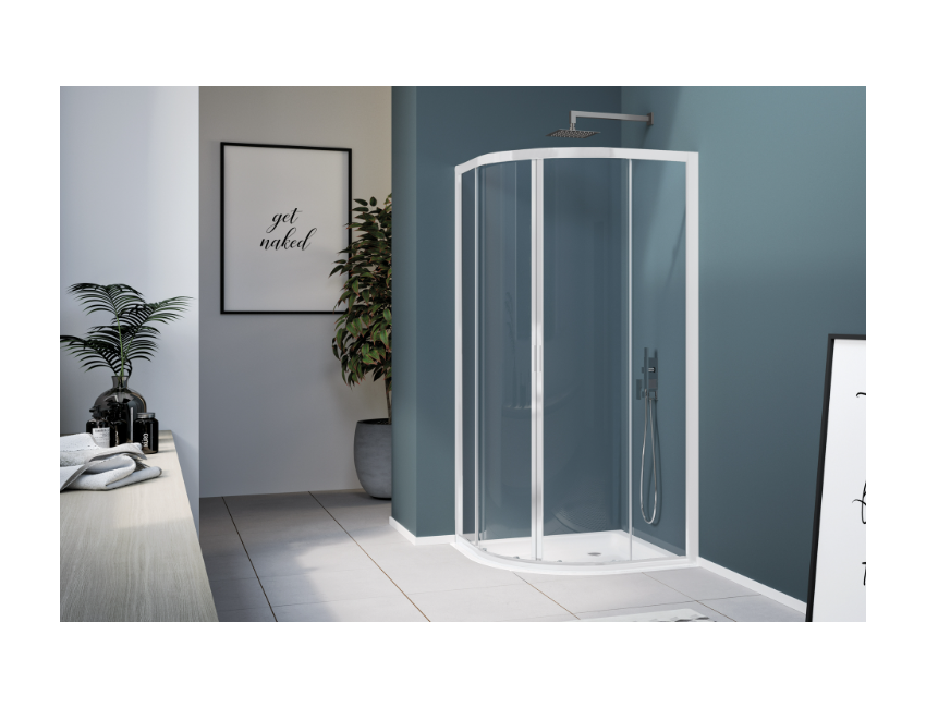 Runde Schiebeduschkabine 80 cm mit mattweißen Aluminiumprofilen und transparenter Paneeloberfläche – America 4