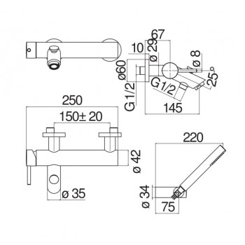 Einhebel-Badewannenmischer mit Brausegarnitur – Nobili Live