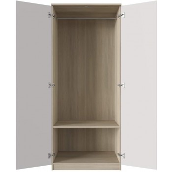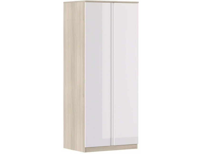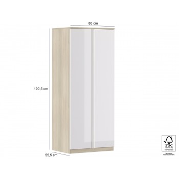 Wardrobe 80x190H cm glossy white and oak with two doors - Cosenza