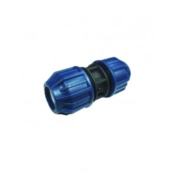 Small straight connector 16 x 16 mm suitable for drip tubing up to a wall thickness of 0.38 mm, with screw clamp connections.