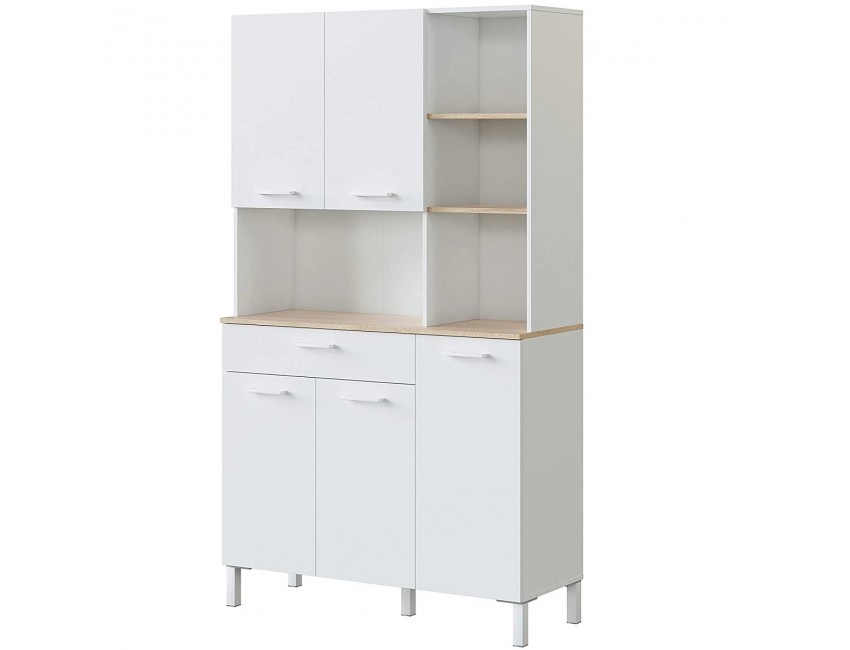 Kitchen cabinet 108x40x186 cm matte white and Canadian oak with 5 doors and 1 drawer – Fanaro