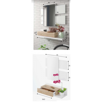 The Bari entrance cabinet is a very elegant product and is made with quality materials. It is a wall-hung cabinet and is equipped with a drawer and a pretty mirror with a rectangular shape. It is available in the elegant matt white and Canadian oak finish. This piece of furniture is perfect for placing in your entrance hall: it will add a touch of class to your home!