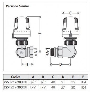 Válvula termostática de doble ángulo diseñada para controles termostáticos, electrotérmicos y electrónicos. Versión izquierda. Para tubería de hierro. La homologación EN 215 es válida para el acoplamiento de controles termostáticos código 200000 y series 201, 199 con cuerpos de válvulas series 220, 221, 222, 223, 224, 225, 226 y 227. Conexión: G 3/8" (ISO 228- 1) F, entrada.conexión: G 3/8" A (ISO 228-1) M, salida. Presión máxima de funcionamiento: 10 bar. Rango de temperatura del fluido: 5–100 °C.