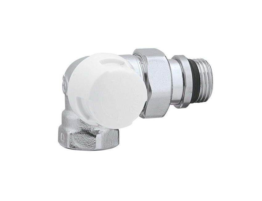 Válvula termostática de doble ángulo para tubo de hierro versión izquierda en latón cromado - Caleffi