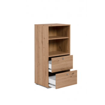 Los dos huecos abiertos son ideales para exhibir libros, plantas y objetos decorativos, mientras que los dos amplios cajones permiten mantener el orden y la organización. Fabricado con materiales resistentes y acabados cuidados, este mueble garantiza solidez, durabilidad y un toque de estilo en cualquier espacio.