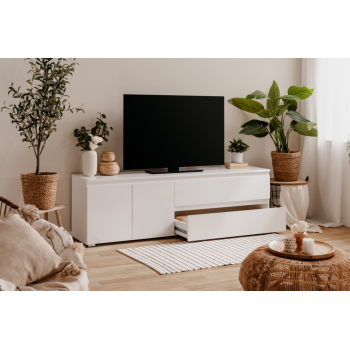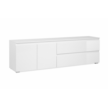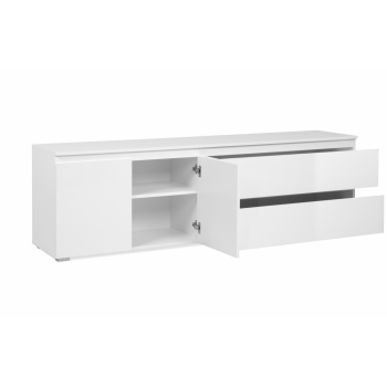 Mueble de TV 180x55x40 cm Blanco Brillo y Blanco Mate 2 Puertas y 2 Cajones - Córdoba
