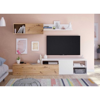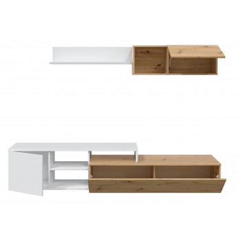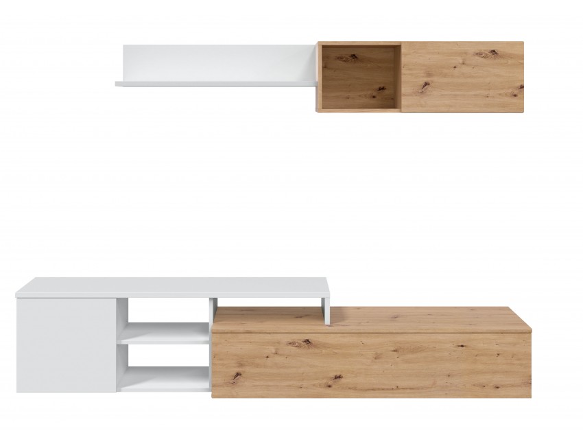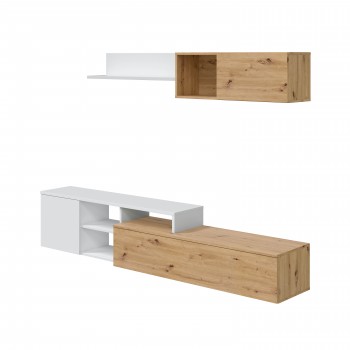 Mueble de salón TV 220 cm roble nórdico y blanco mate – Avola