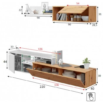 - Dimensiones del armario inferior: 220 x 40 x 44 cm