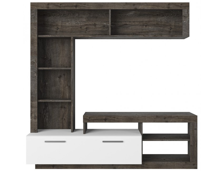 La pared Nizza está diseñada para ser funcional y ver la televisión cómodamente, en un marco de fuerte diseño y personalidad. Es ideal para guardar objetos de cualquier tipo en su interior: la parte superior cuenta con 5 estantes, mientras que en la parte inferior encontramos dos cajones con tiradores de cromo brillo que combinan a la perfección con el estilo moderno.