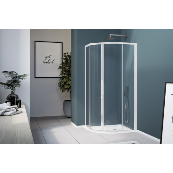 Cabina de ducha corredera redonda de 80 cm con perfiles de aluminio blanco mate y acabado de panel transparente - America 4