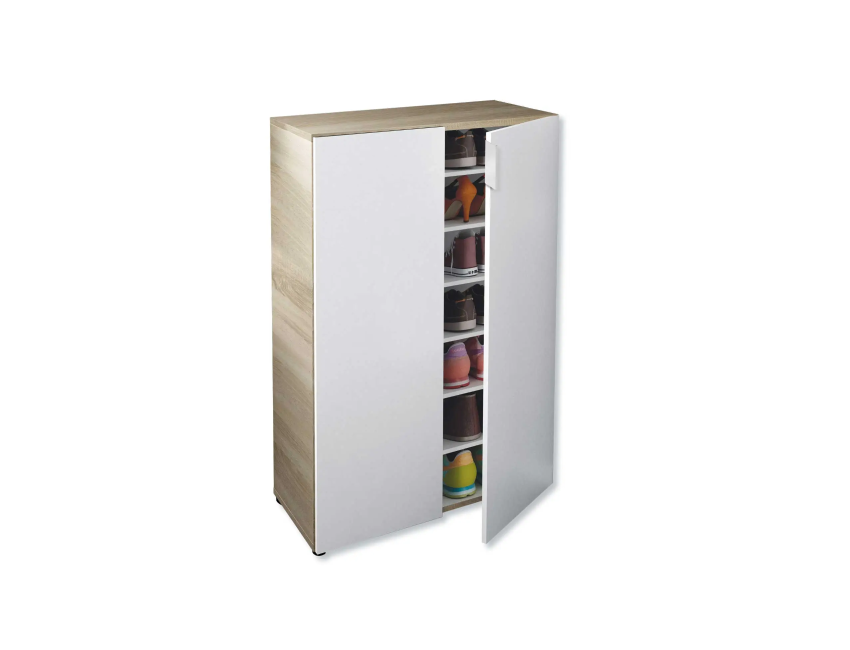 Zapatero 72x36x103 cm blanco mate y roble canadiense con 2 puertas – Suecia