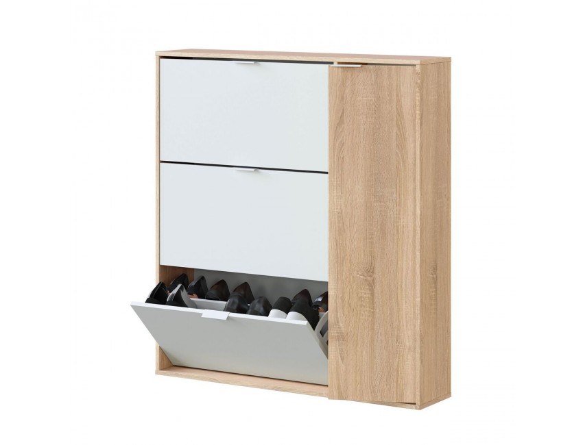 Zapatero de doble profundidad 106x22x115 cm con 3 puertas abatibles y 1 puerta blanco mate y roble canadiense – Russia