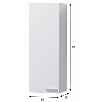 Armoire murale suspendue salle de bain 30x25x85 cm blanc brillant avec 1 porte – Oxford