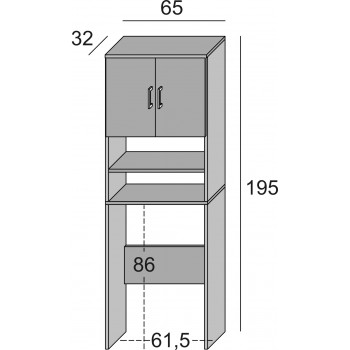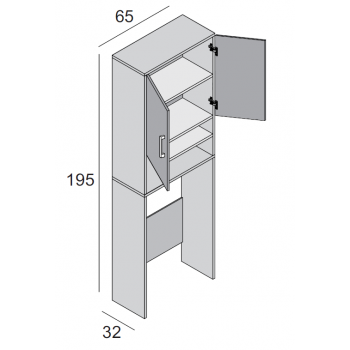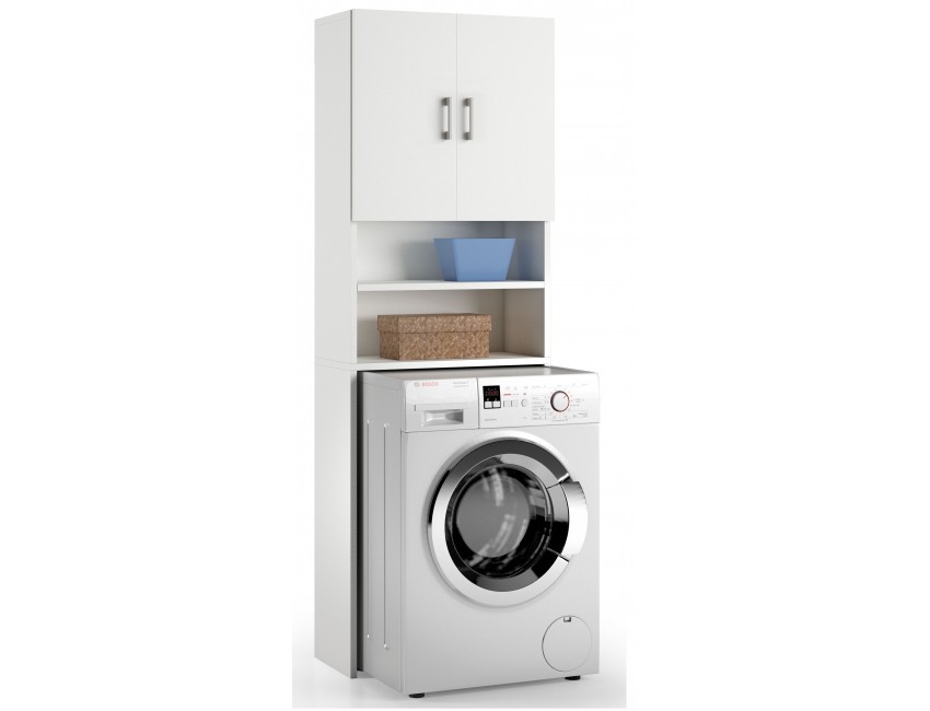 Meuble au-dessus de la machine à laver 65x32x195 cm blanc dentelé avec deux portes et deux étagères - Faggio