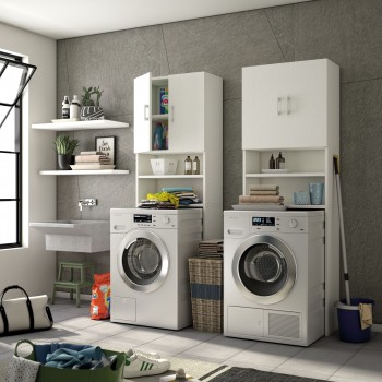 Sur Abitare.com nous vous proposons un meuble pratique et pratique au-dessus de la machine à laver. Il est équipé de deux portes et deux étagères. En interne, il y a une étagère de rangement. Grâce à sa finition simple et soignée en blanc frêne, le meuble s’adapte facilement à tout type de mobilier. De plus, la partie inférieure du plan est structurée pour placer la machine à laver, de manière à rendre tout aussi confortable et pratique que possible. Avec les meubles Faggio, l’activité et la fonctionnalité sont garanties!