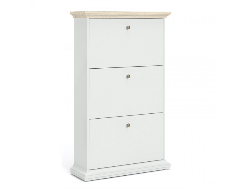 Meuble à chaussures avec 3 rabats double profondeur 127 cm blanc mat et chêne - Pescara