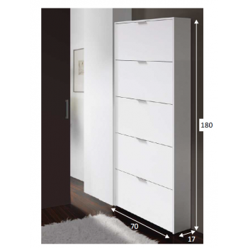 Meuble à chaussures gain de place 180x17x70 cm blanc brillant avec 5 abattants – Russia