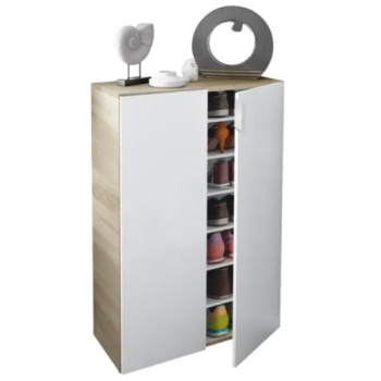 Le meuble à chaussures Svezia représente une touche d’élégance à l’intérieur de votre maison : facile à placer à l’entrée et dans tout autre espace car, dans son style minimal, il est capable de rendre l’environnement agréable et plus ordonné. Il se compose de deux portes avec poignée en aluminium de couleur blanche, une structure en bois mélaminé, six étagères intérieures réglables en hauteur pour vous permettre de garder plus de chaussures de tout type.
