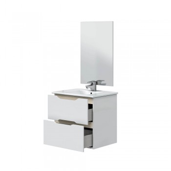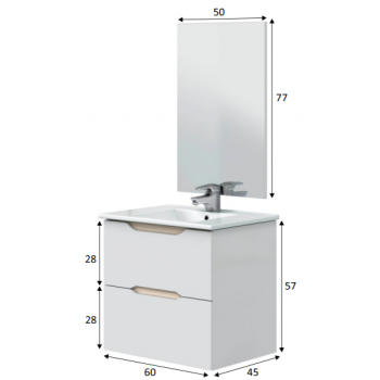 Ce meuble de salle de bain suspendu pratique, doté de deux grands tiroirs, offre une solution fonctionnelle et moderne pour l'aménagement de votre salle de bain. Fabriqué en panneau mélaminé avec chants en PVC, il est accompagné d'un miroir assorti du même style. Les tiroirs, équipés de la fermeture lente Soft Close et d'un tiroir supérieur avec protection anti-siphon, garantissent ordre et commodité. Conçu pour une installation murale avec quincaillerie réglable, supporte jusqu'à 28 kg.