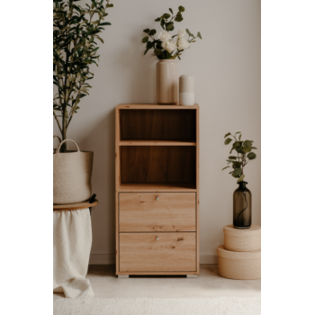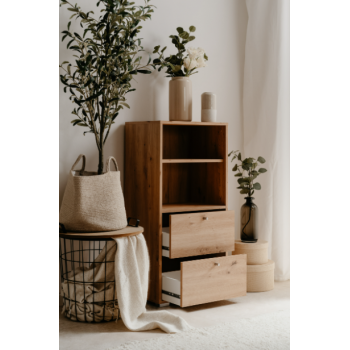 I due vani a giorno sono ideali per esporre libri, piante e oggetti decorativi, mentre i due cassetti capienti permettono di mantenere ordine e organizzazione. Realizzato con materiali resistenti e rifiniture curate nei dettagli, questo mobile garantisce solidità e durata nel tempo, aggiungendo stile e praticità a qualsiasi spazio.